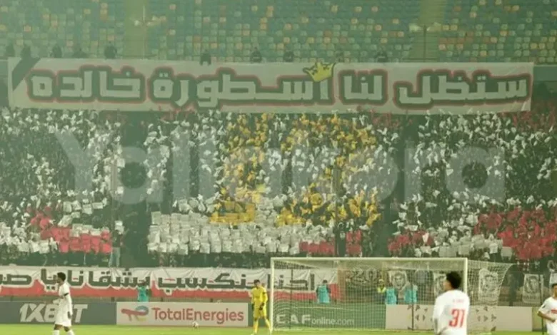 وحرصت جماهير الزمالك على تكريم نجمها الراحل محمد صبري، بالهتاف له، ورفع لافتة تحمل عبارة: “ستظل لنا أسطورة خالدة”، بالإضافة لرفع صورة محمد صبري ورقمه الخاص 12 في المدرجات.