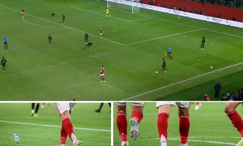 كما فوجئ لاعبو الأهلي، خلال الهجمة الأخيرة في اللقاء، بقذف كرات من الجانب المغربي إلى داخل الملعب، نحو الثنائي أحمد سيد زيزو وإمام عاشور، لإيقاف الهجمة المرتدة للفريق الأحمر قبل إطلاق الحكم لصافرة النهاية.